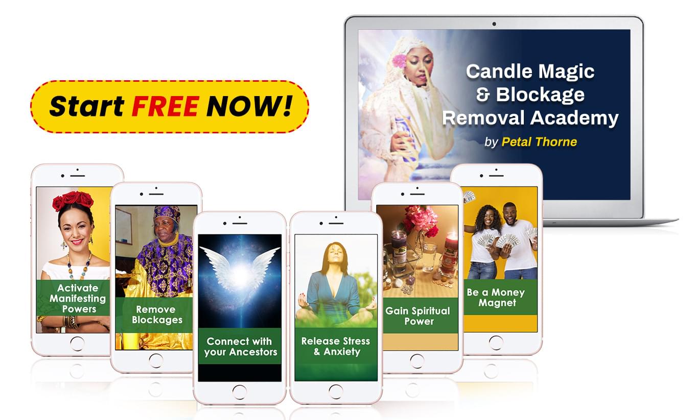 The “Candle Magic & Blockage Removal Academy” is the place where you learn the mystical secrets of practical candle magic & Blockage Removal. No more guesting of what to do when you have a challenge at work, in your business, with relationships, with spiritual blockages, and just about anything that may be hampering your life.  Includes everything you’ll need to connect with your Ancestors, Spirit Guides, Angels and become the master of your own life.